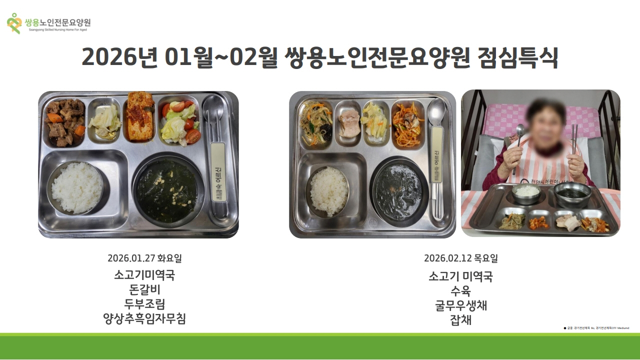 2026년 01월·02월 쌍용노인전문요양원 점심특식